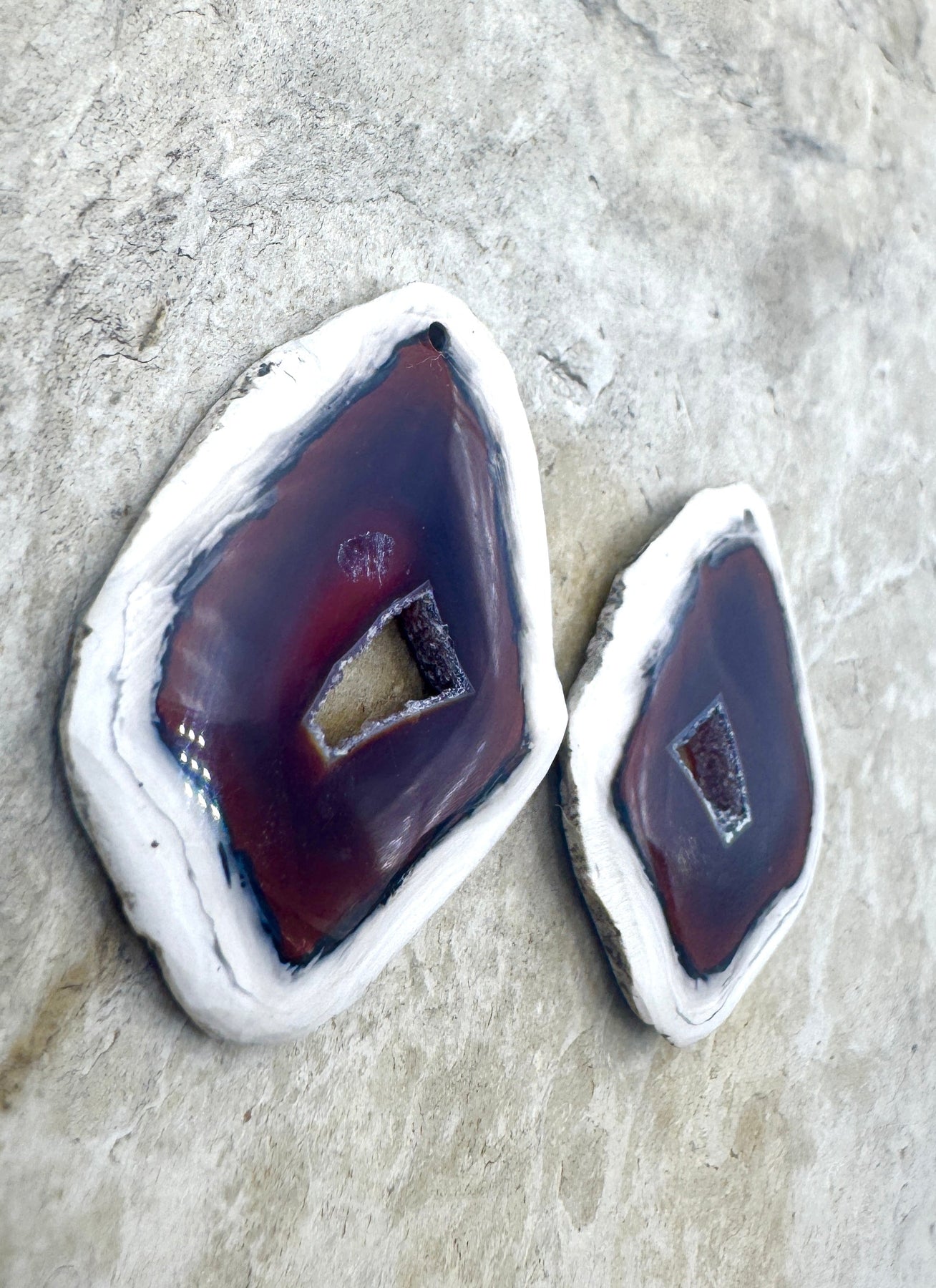 Besutiful dark amber color. These two slices vary slightly in size