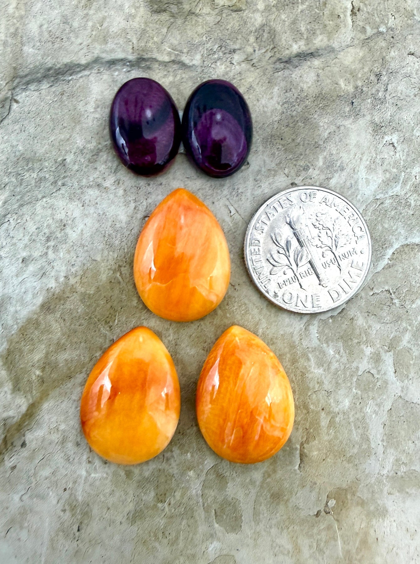 CLOSEOUT LOT of 5 Spiny Oyster Shell Cabochons, 5 Cabs