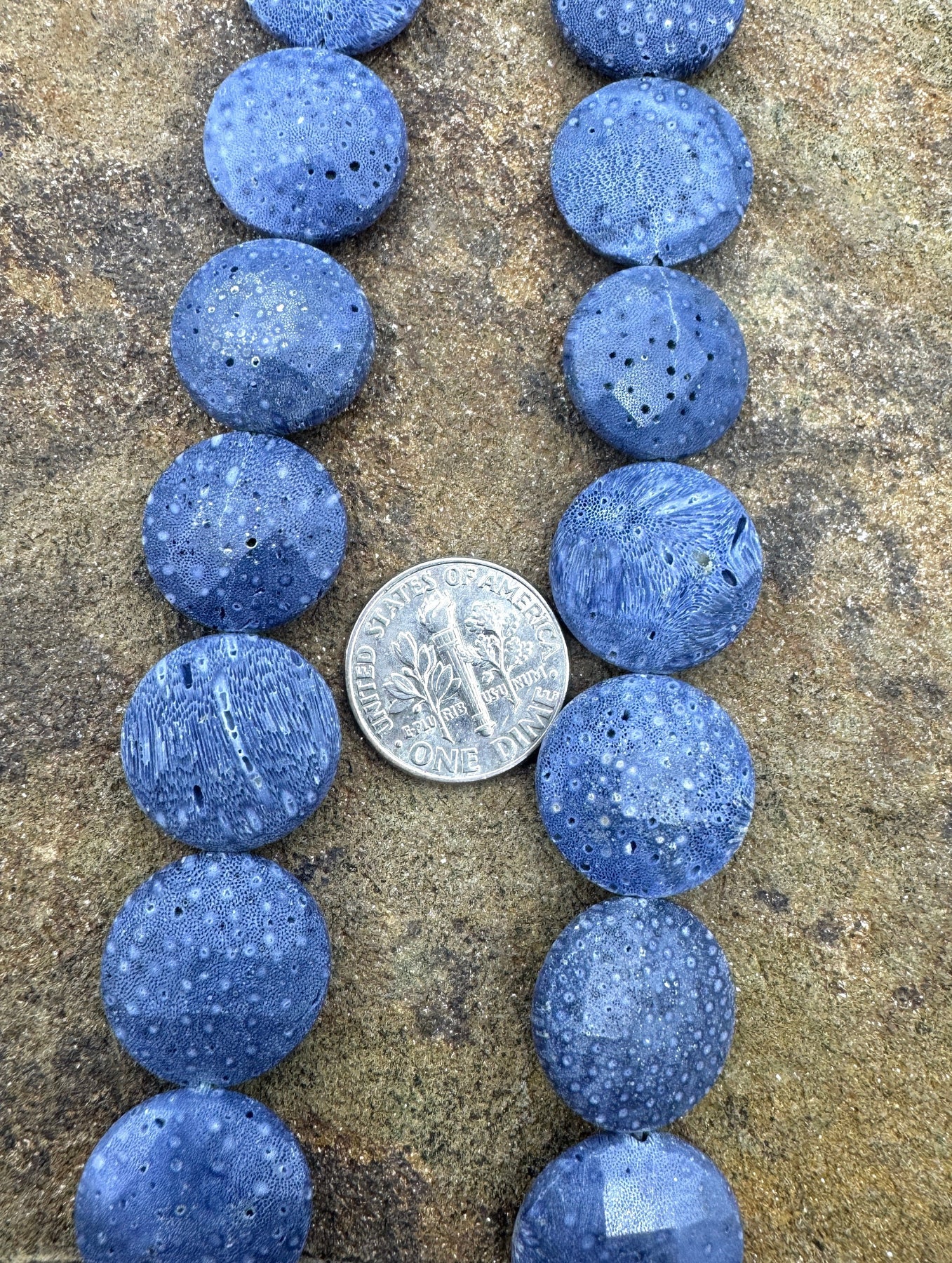 Natural Blue Sponge Coral 16mm Faceted Coin Beads, 7.5 inch Strand/12 beads