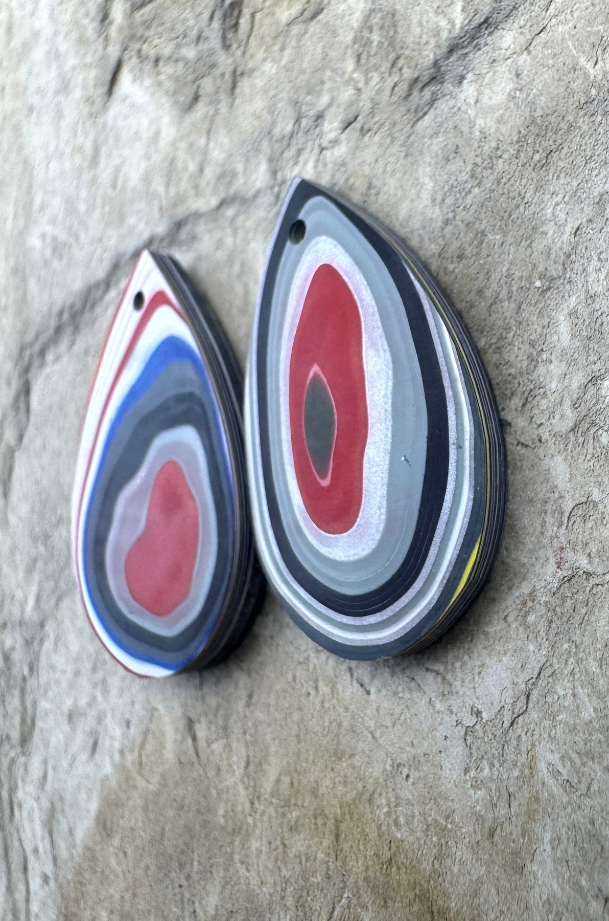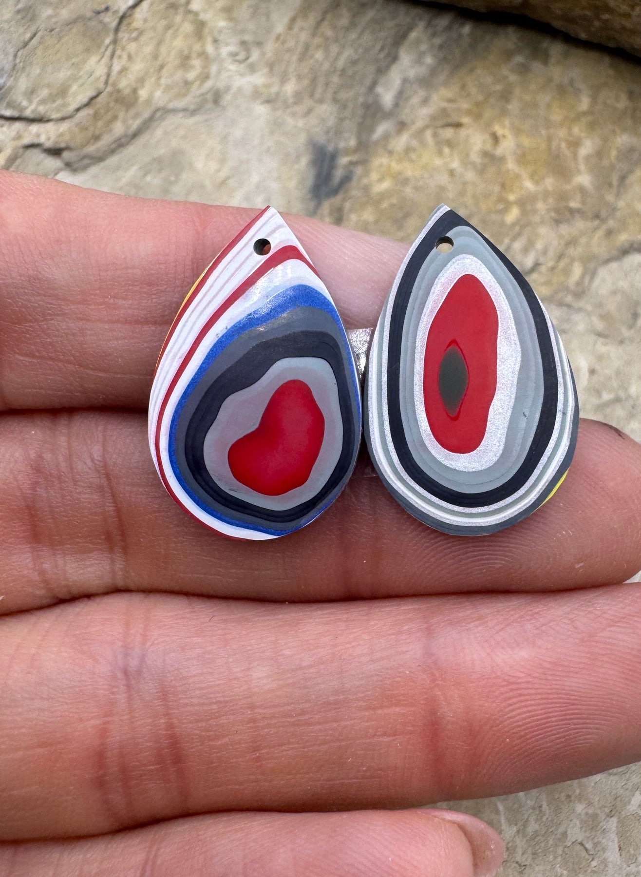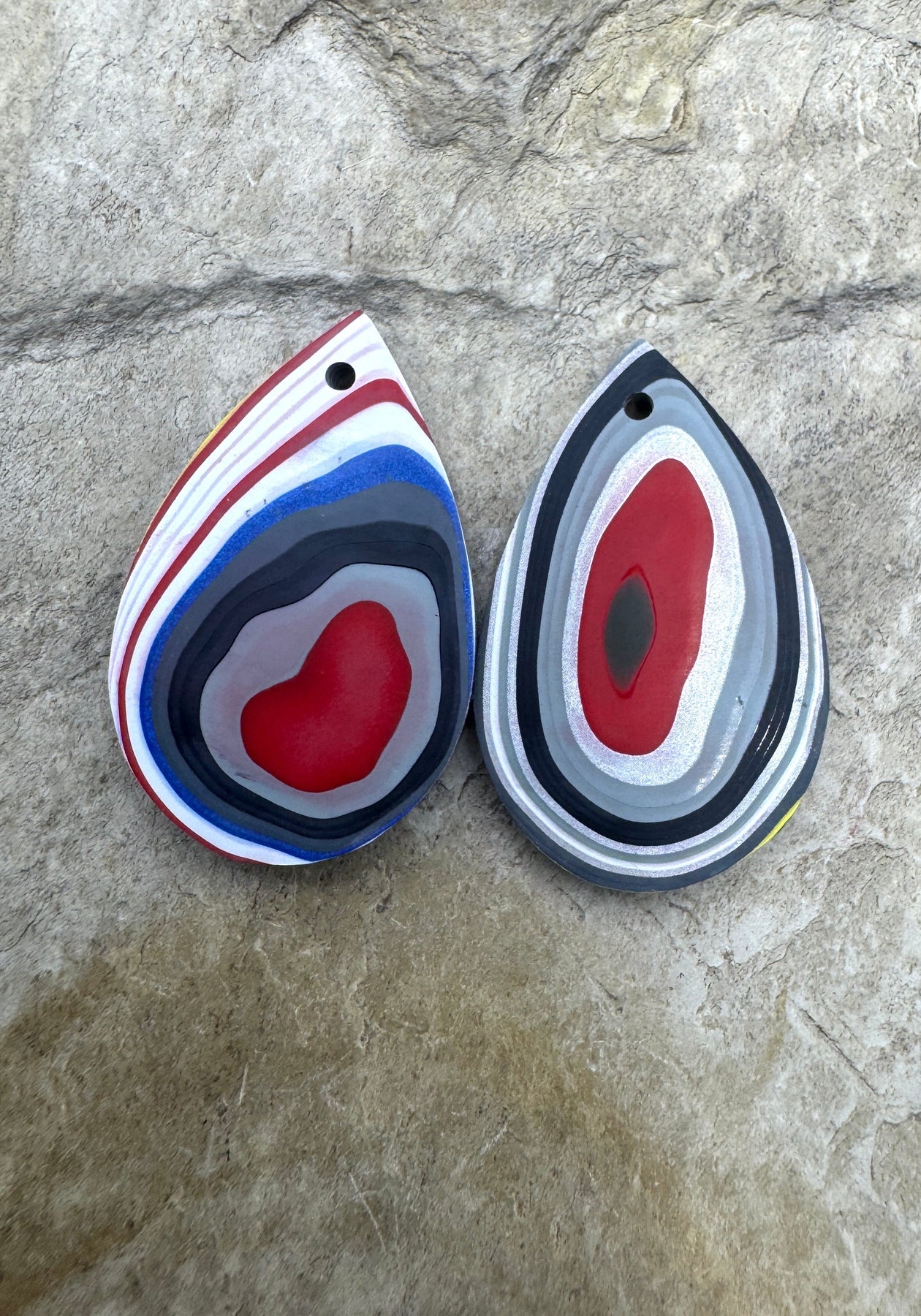 Priemium Fordite/Detroit Agate Earring Slab Bead Pair 15x23mm