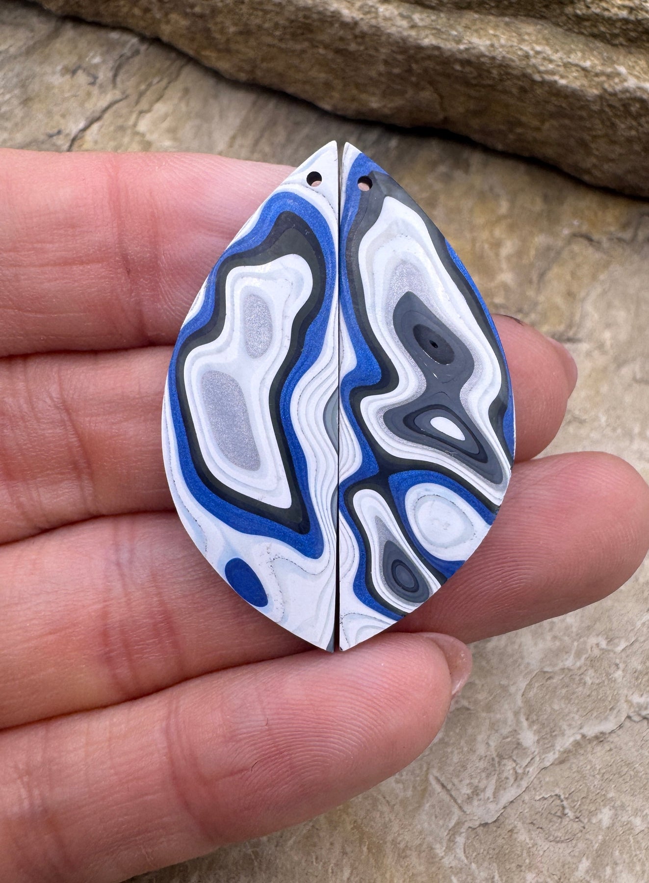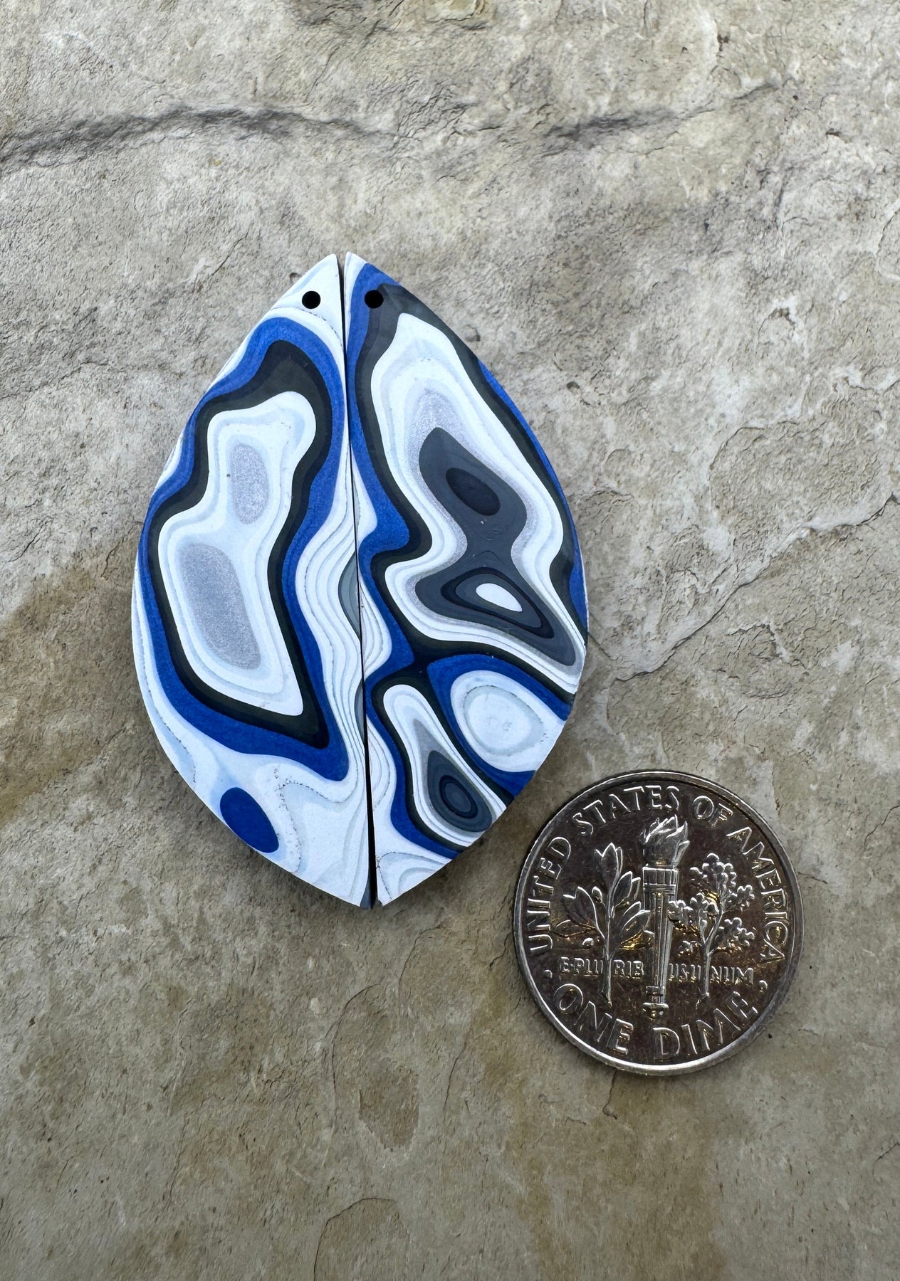 Priemium Fordite/Detroit Agate Earring Slab Bead Pair 14x40mm