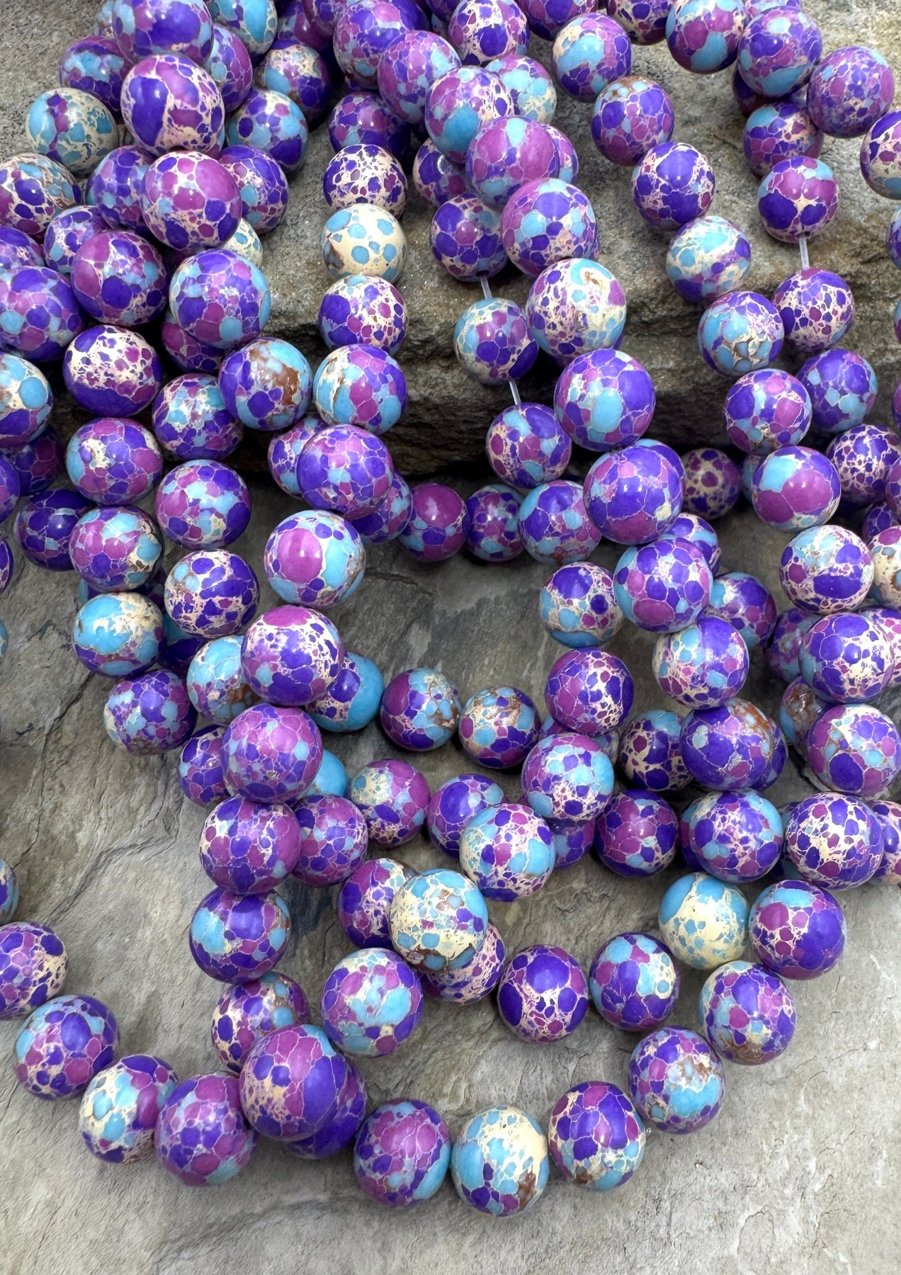 Fun Confetti Purple Dyed Magnicite 10mm Round Beads, 16 Inch Strand