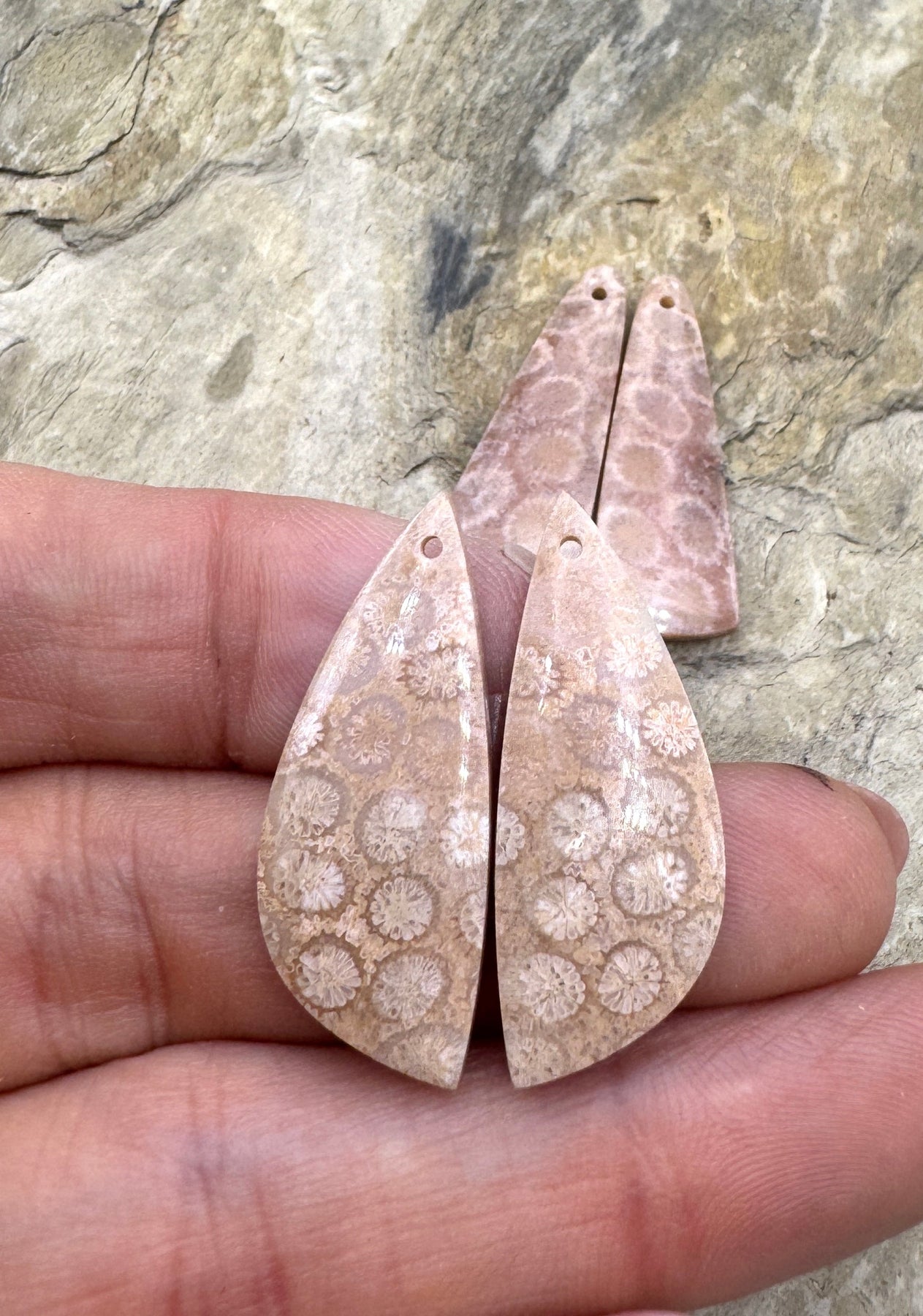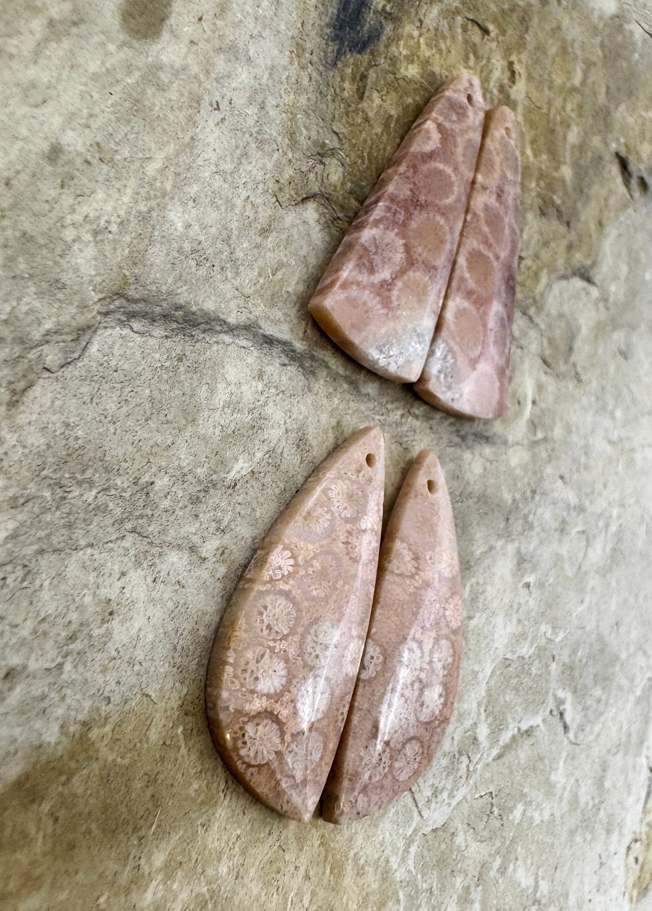 Fossil Coral Matching Earring Slab Bead Pair 12x31mm, Select One Pair