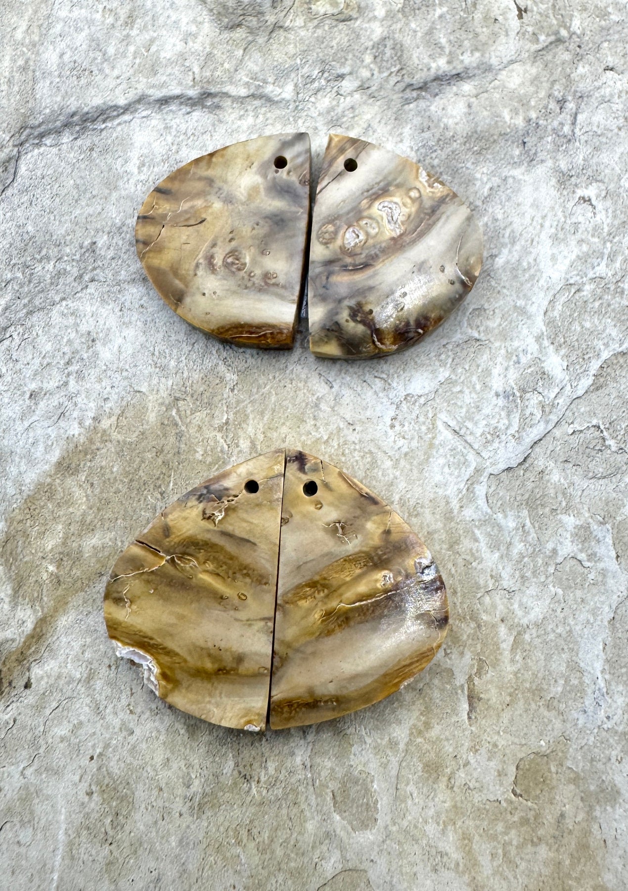 Fossilized Woolly Mammoth Tooth Matching Earring Slab Bead Pair, One Earring Pair