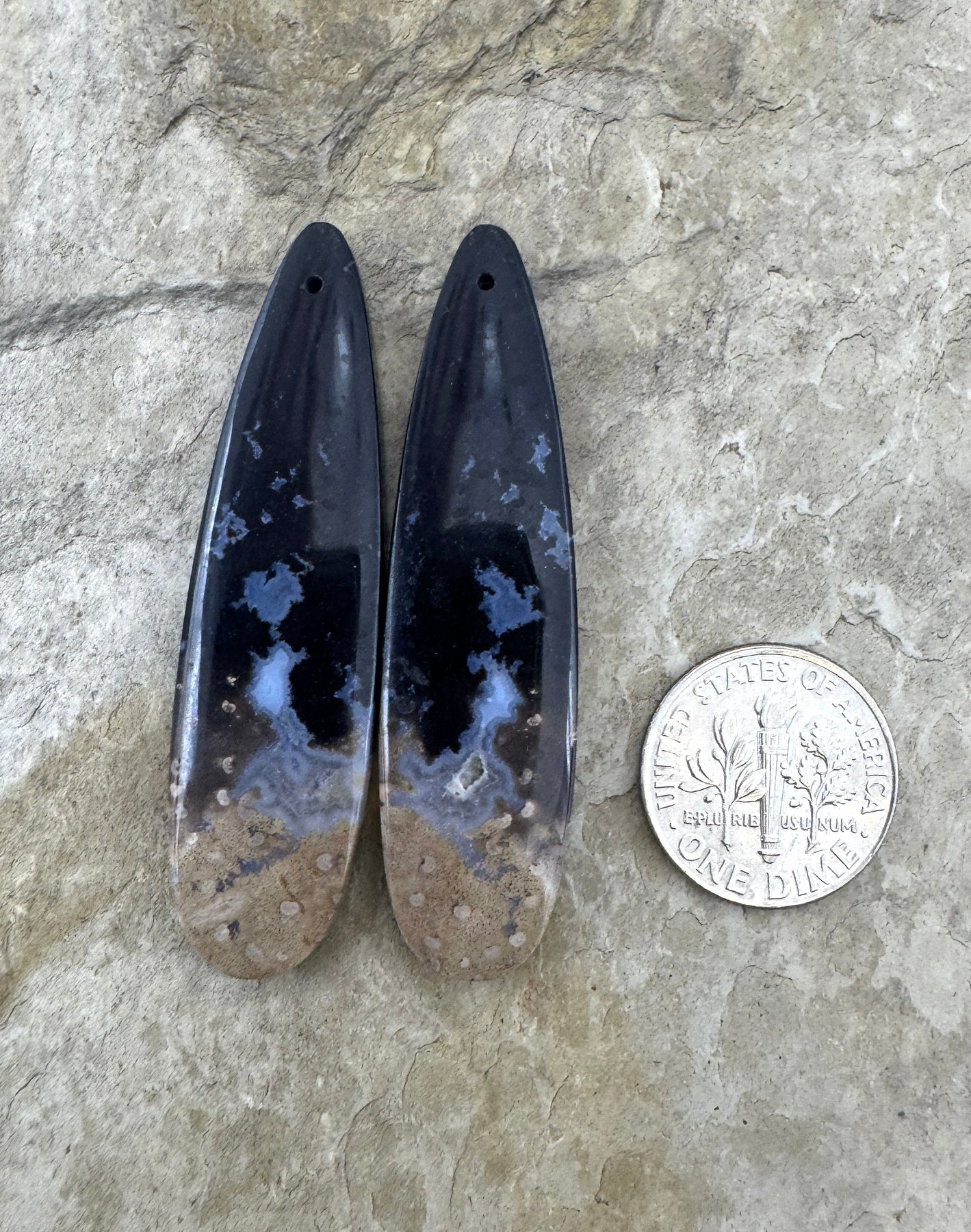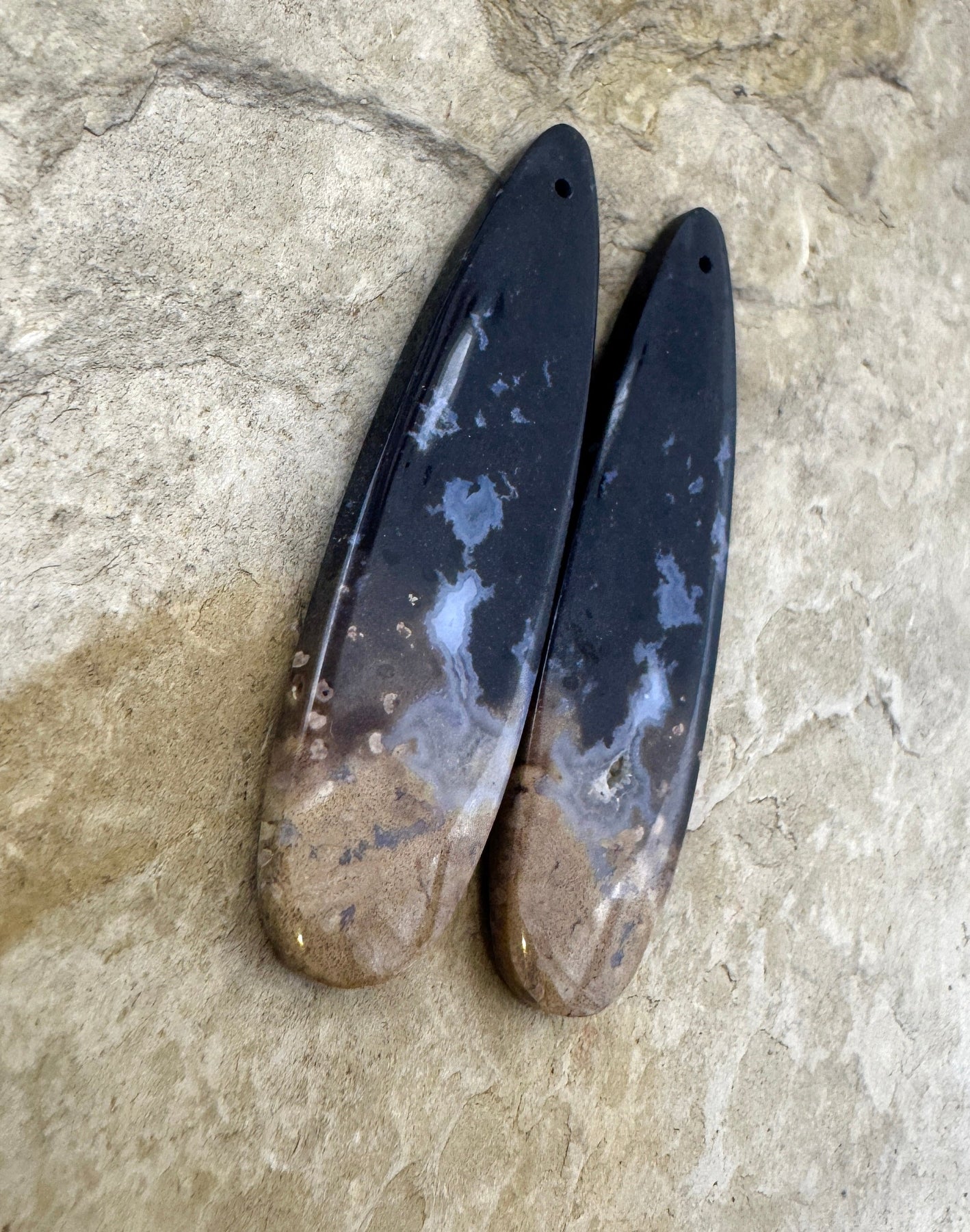 Petrified Palm Root Matchimg Earring Slab Bead Pair 13x50mm