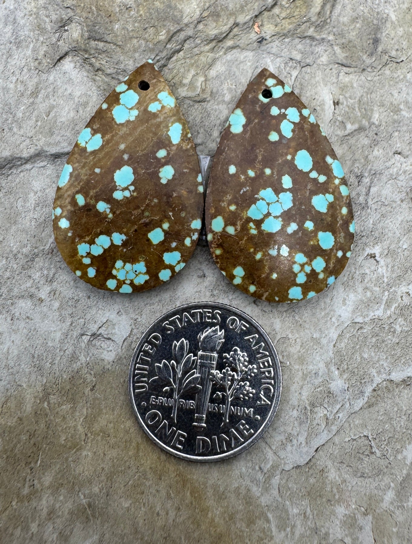 RARE Number 8 Turquoise (Nevada) Matching Earring Slab Bead Pair 17x28mm