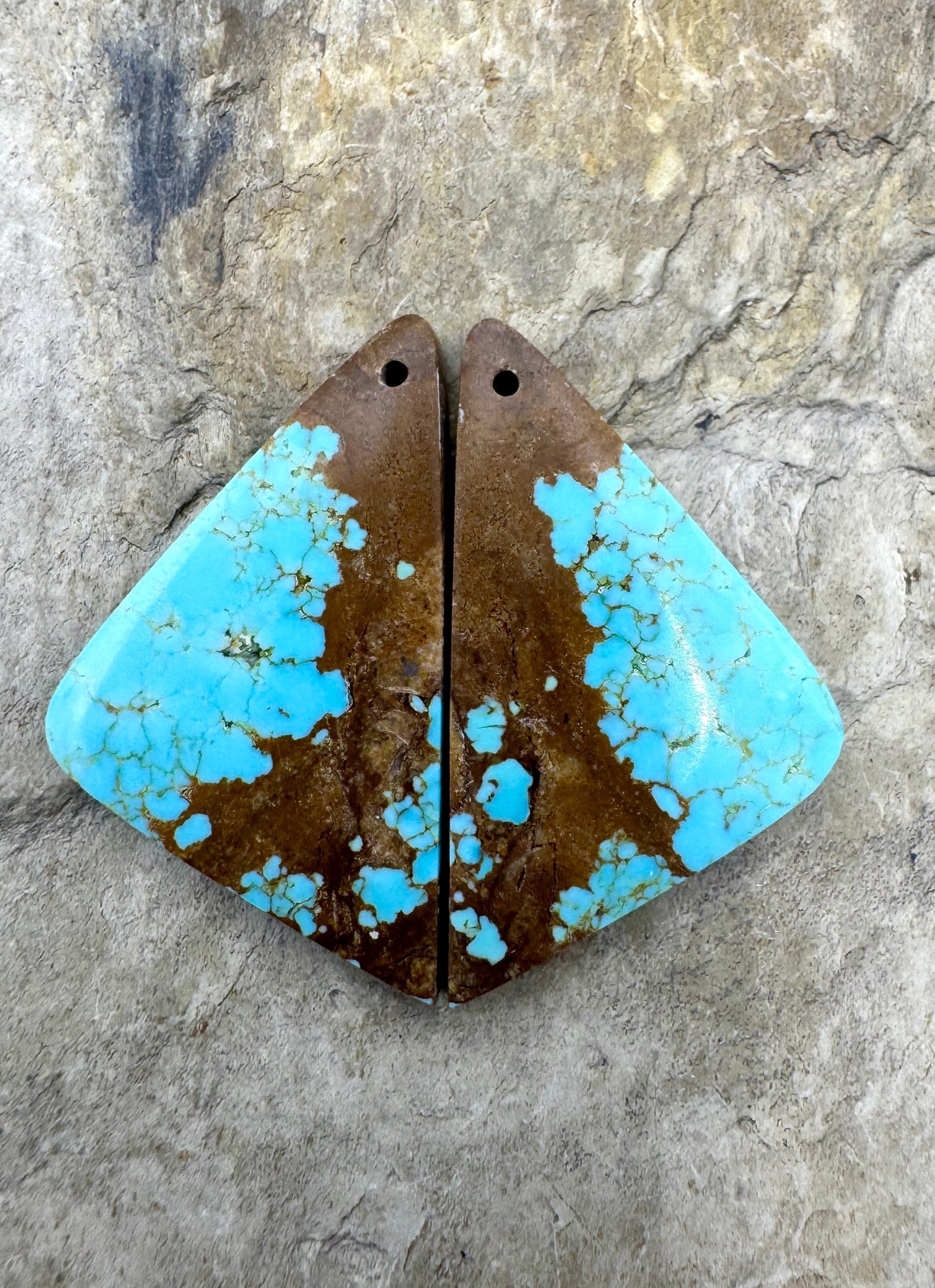 RARE Number 8 Turquoise (Nevada) Matching Earring Slab Bead Pair 18x32mm