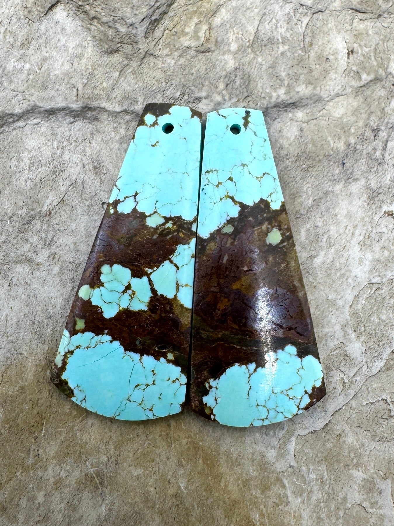 RARE Number 8 Turquoise (Nevada) Matching Earring Slab Bead Pair 15x35mm