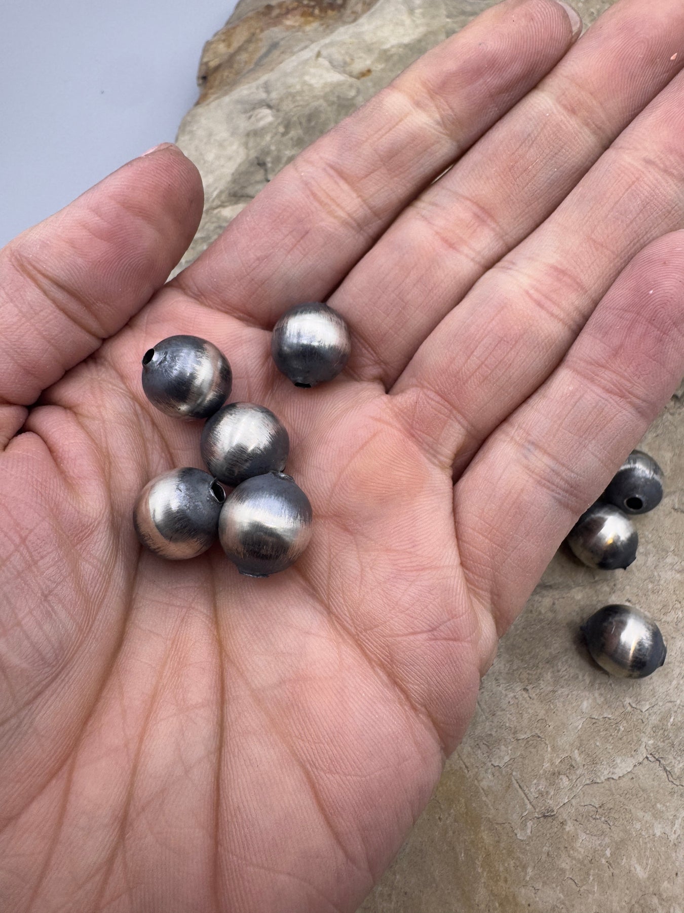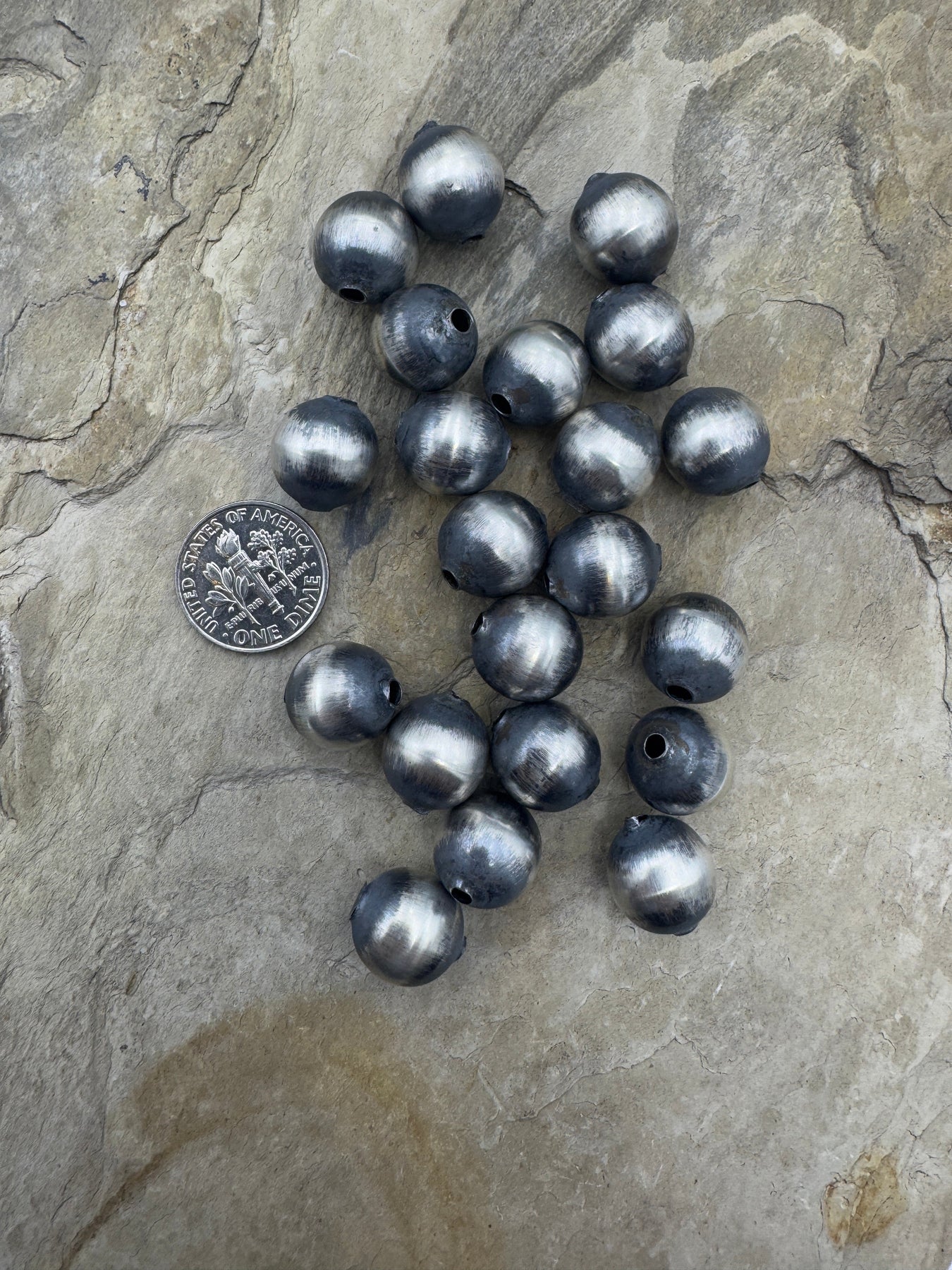 Navajo Style Pearls BIG Sterling Silver Round Beads 12mm (PKG of 2 beads)