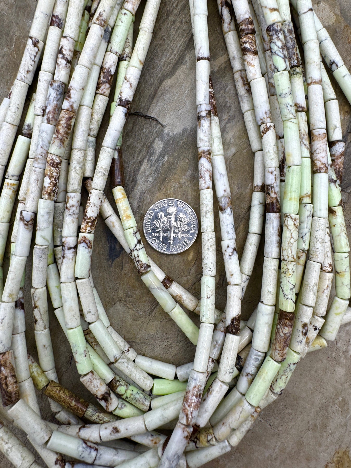 Lemon Chrysoprase (Australia)Tube Beads 4x13mm, 15 inch strands