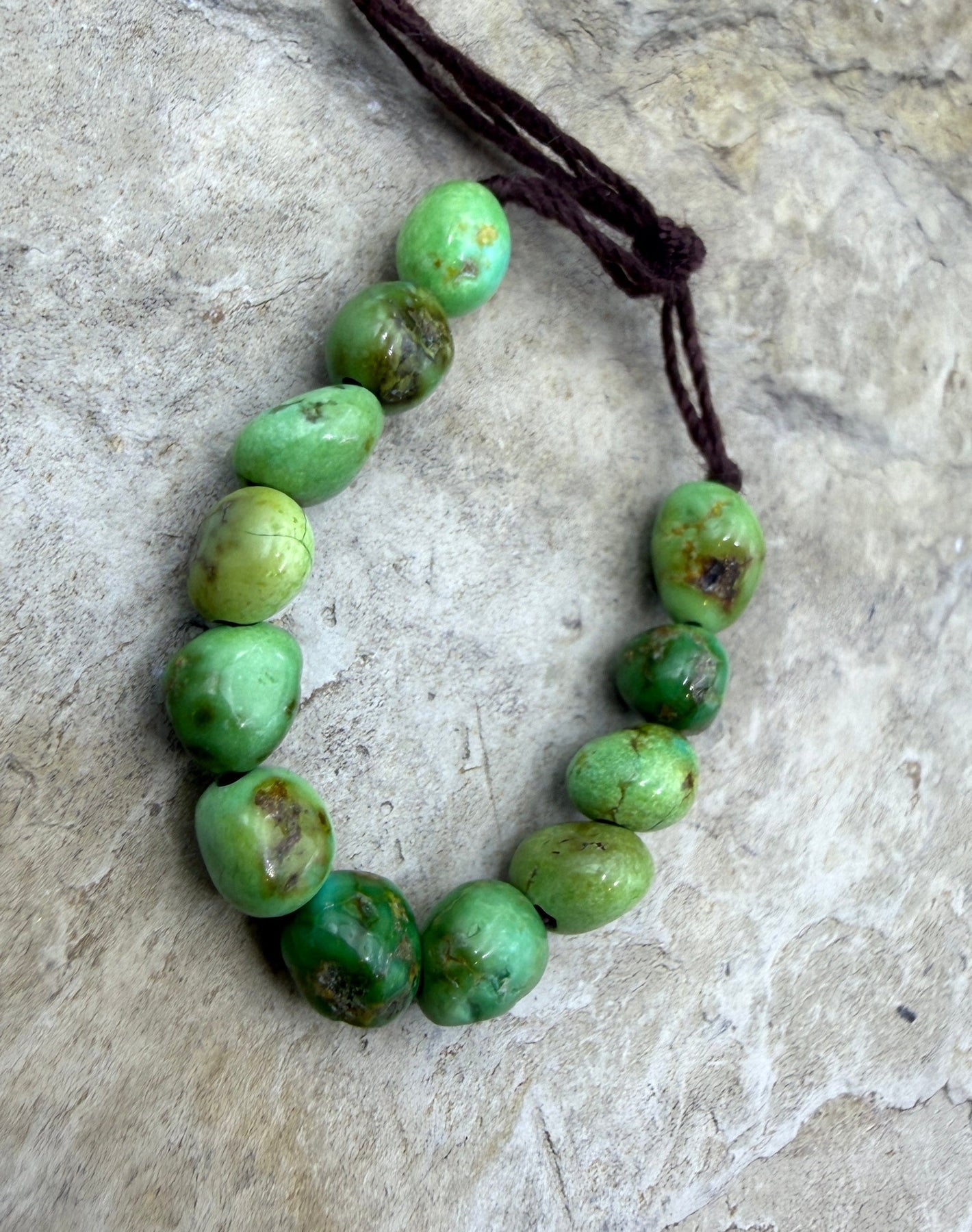 Sonoran Gold Turquoise is a recent discovery (2019) and comes from the mines near Cananea, Mexico. This turquoise does not come in veins but rather individual nuggets in a clay deposit. The colors can be spectacular, bright in tones of deep green, lime and blue/green mixed, only recently has material been found that is all blue. This turquoise sometimes has golden brown matrix but can also have lighter yellow or white matrixing where the host rock peeks through the turquoise. The color combinations and shades can vary. Because of these rich color variations this new Sonora Gold turquoise is distinctive and has a lot of character.