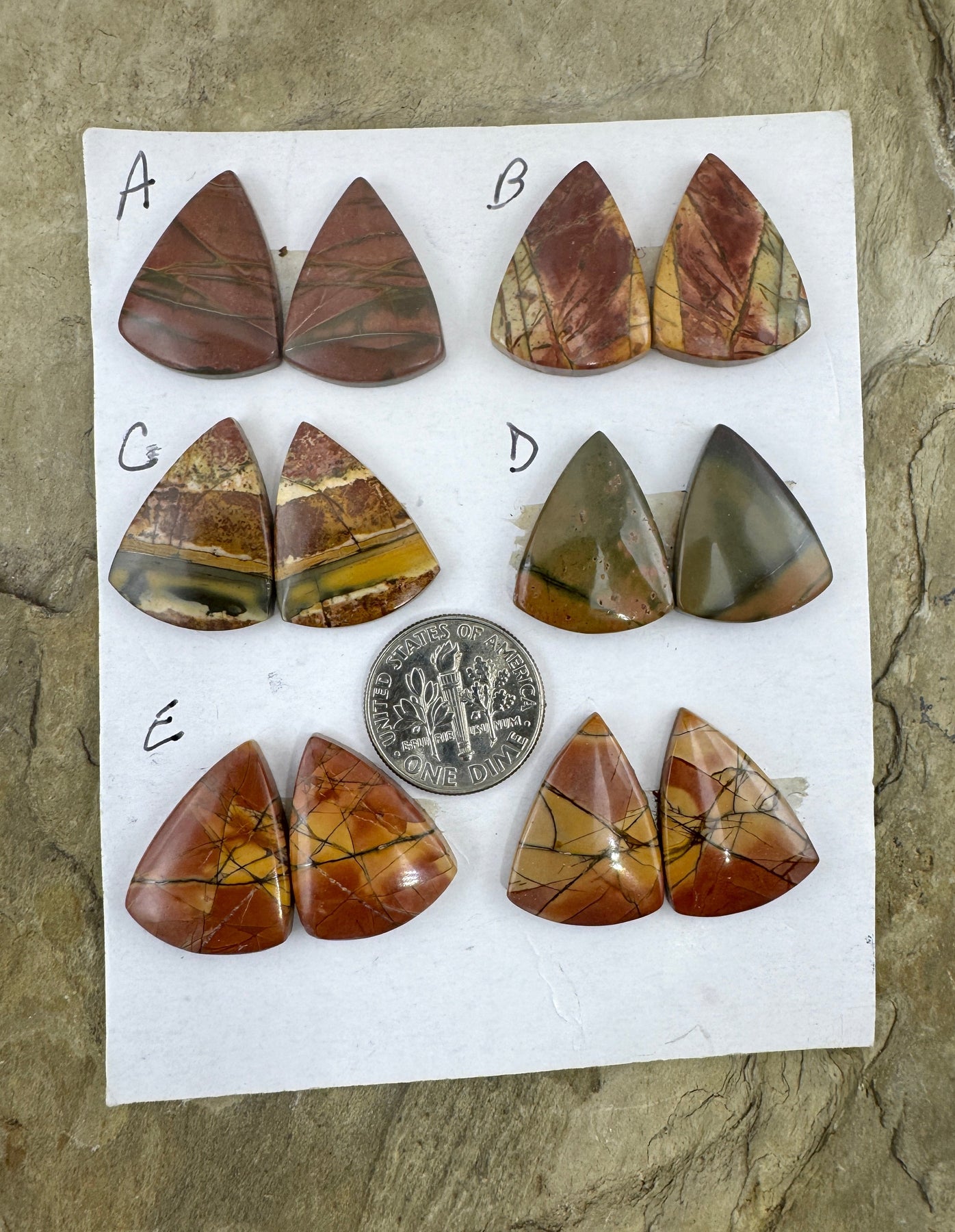 Red Creek Jasper Matching Cabochon Pairs 15x21mm (Select One Pair)