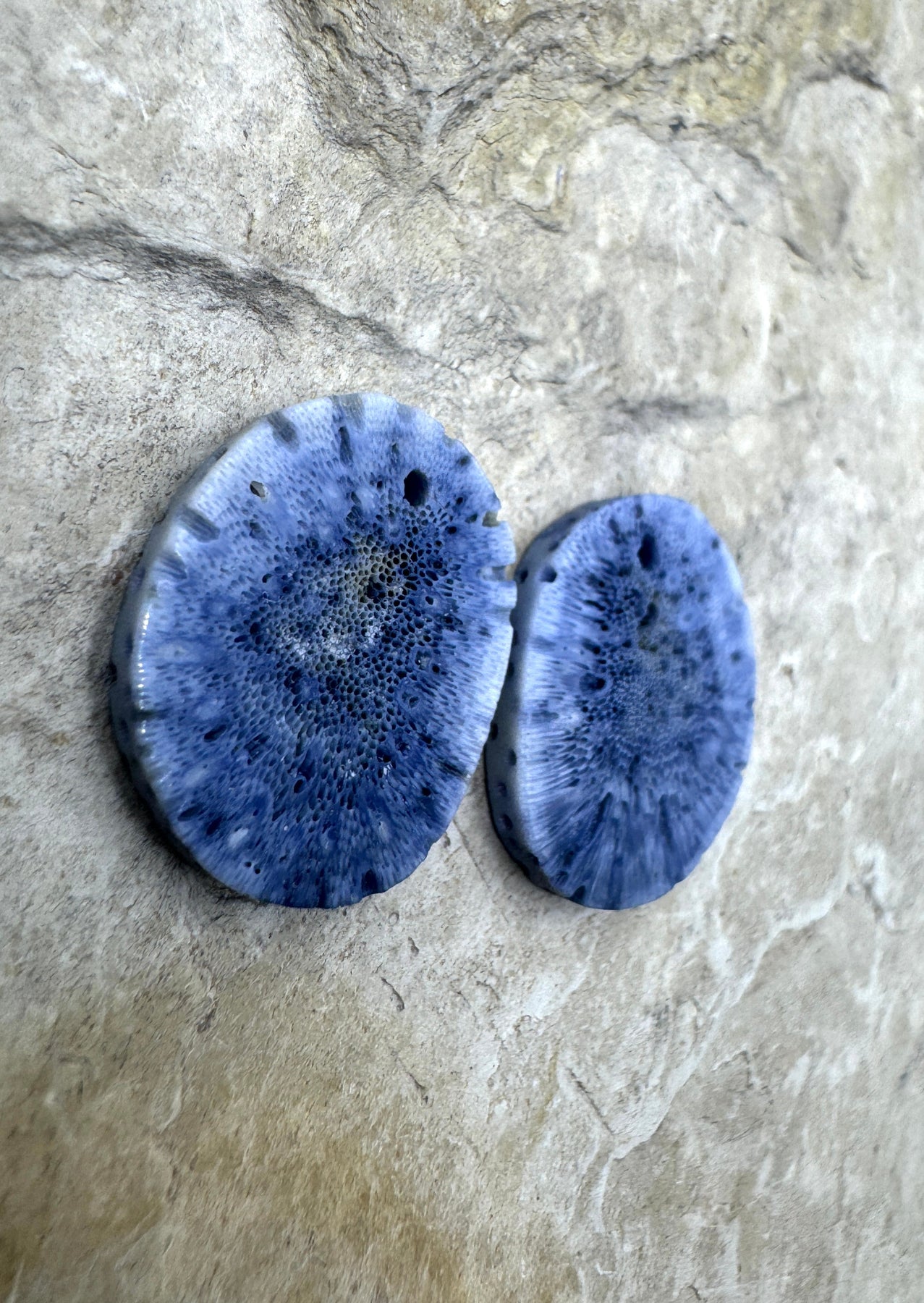 Natural Blue Sponge Coral Matching Earing Slab Bead Pair 16x20mm
