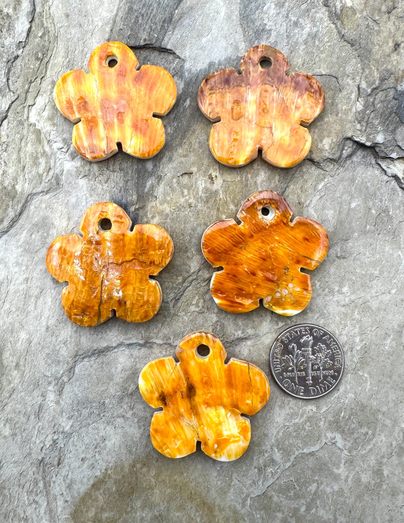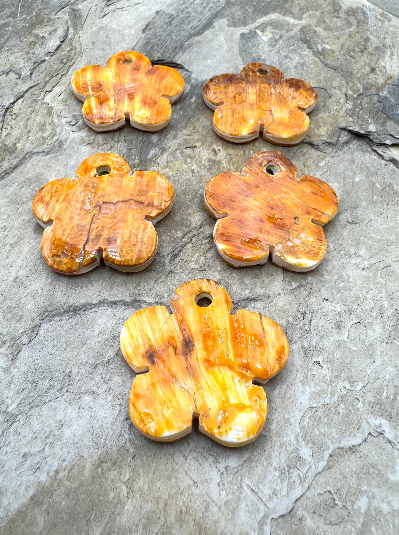 Orange Spiny Oyster Flower Shaped Large Hole Focal Bead 30mm, One Focal Bead