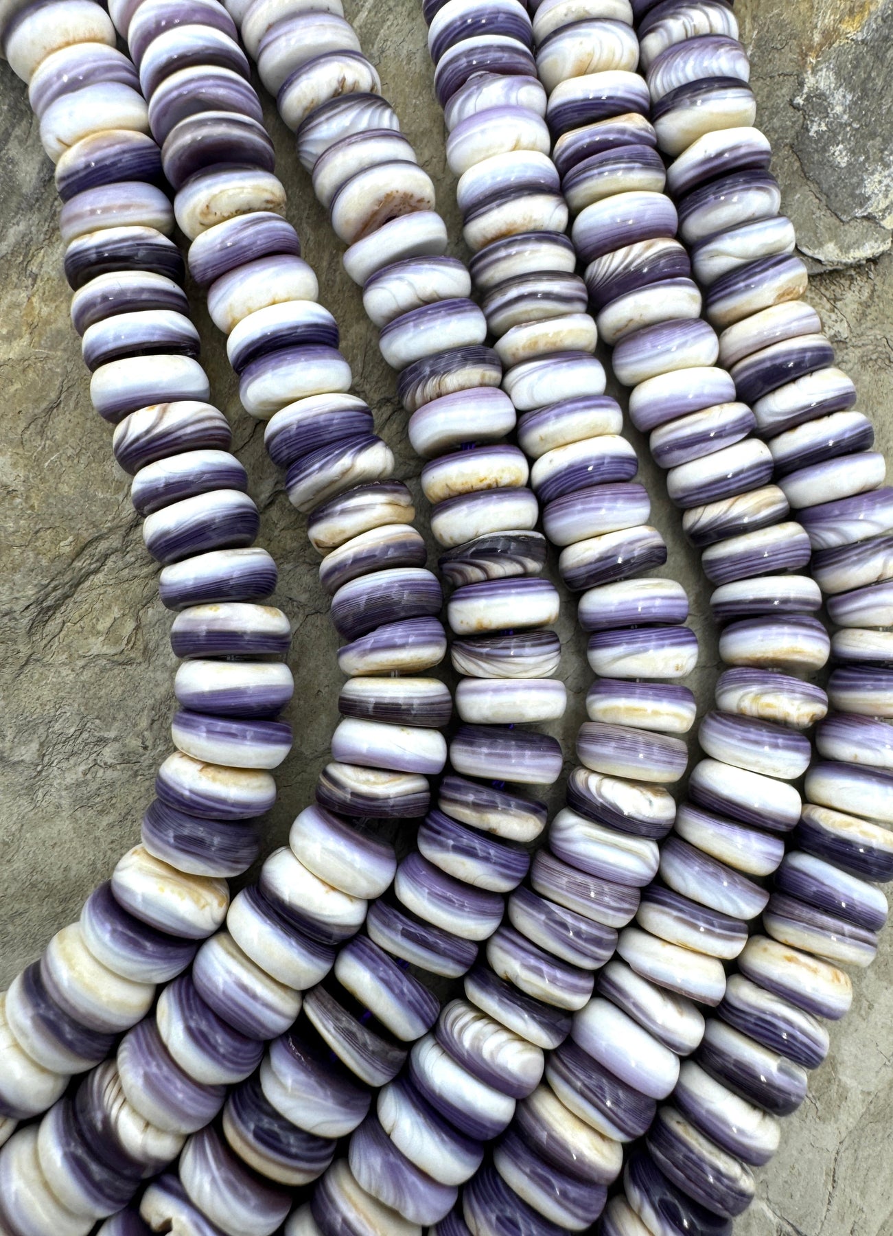 Purple Wampum/Quahog Shell 8mm Button Beads, 8 inch Strand