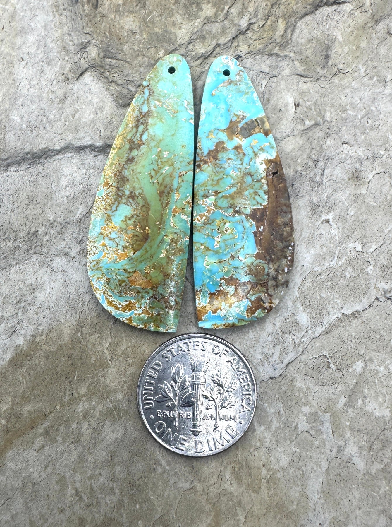 Pilot Mountain Turquoise (Nevada) Large Earring Slab Bead Pair, 16x43mm