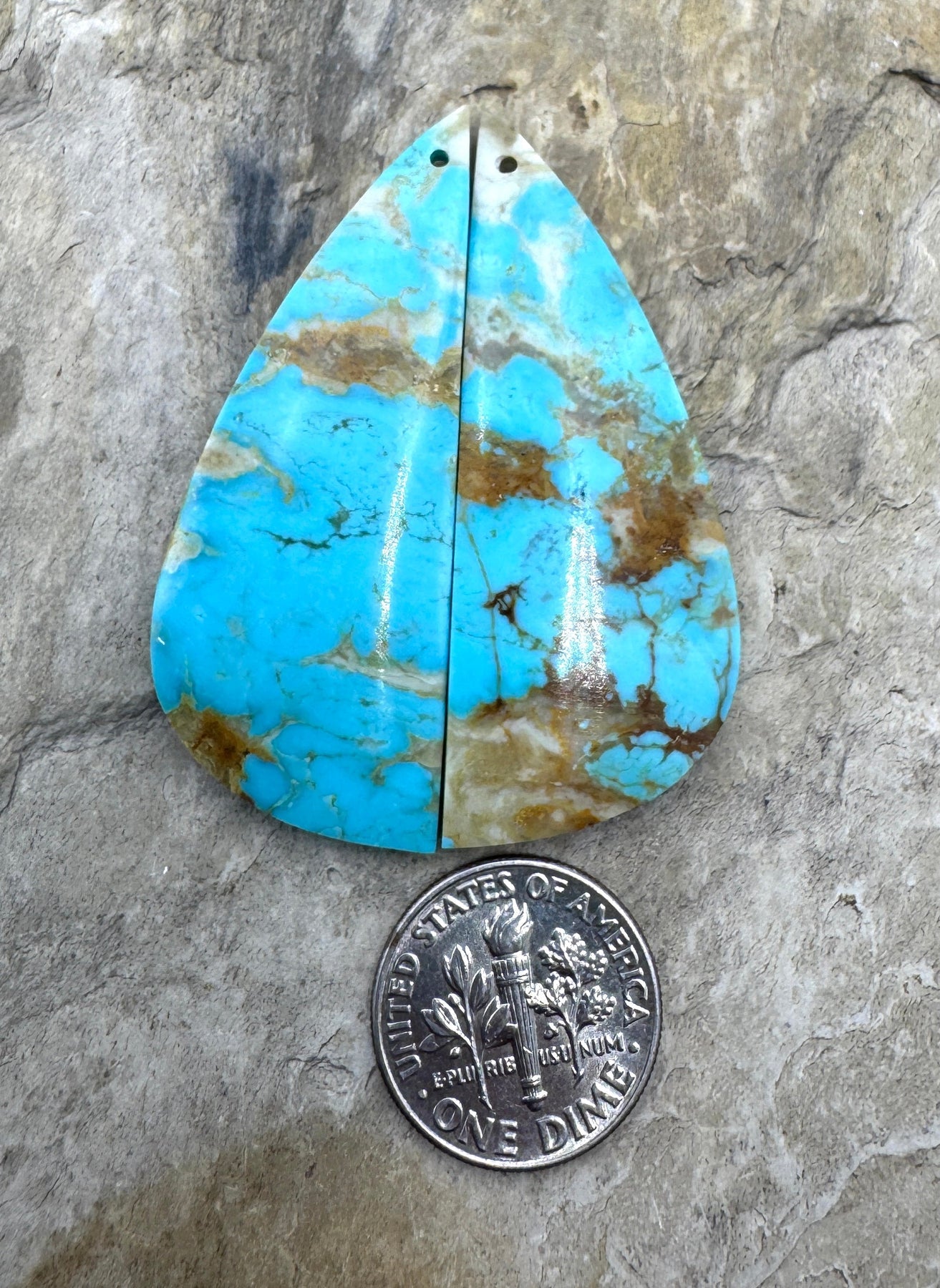 Kingman Turquoise (AZ) BIG Matching Earring Slab Bead Pair, 18x48mm