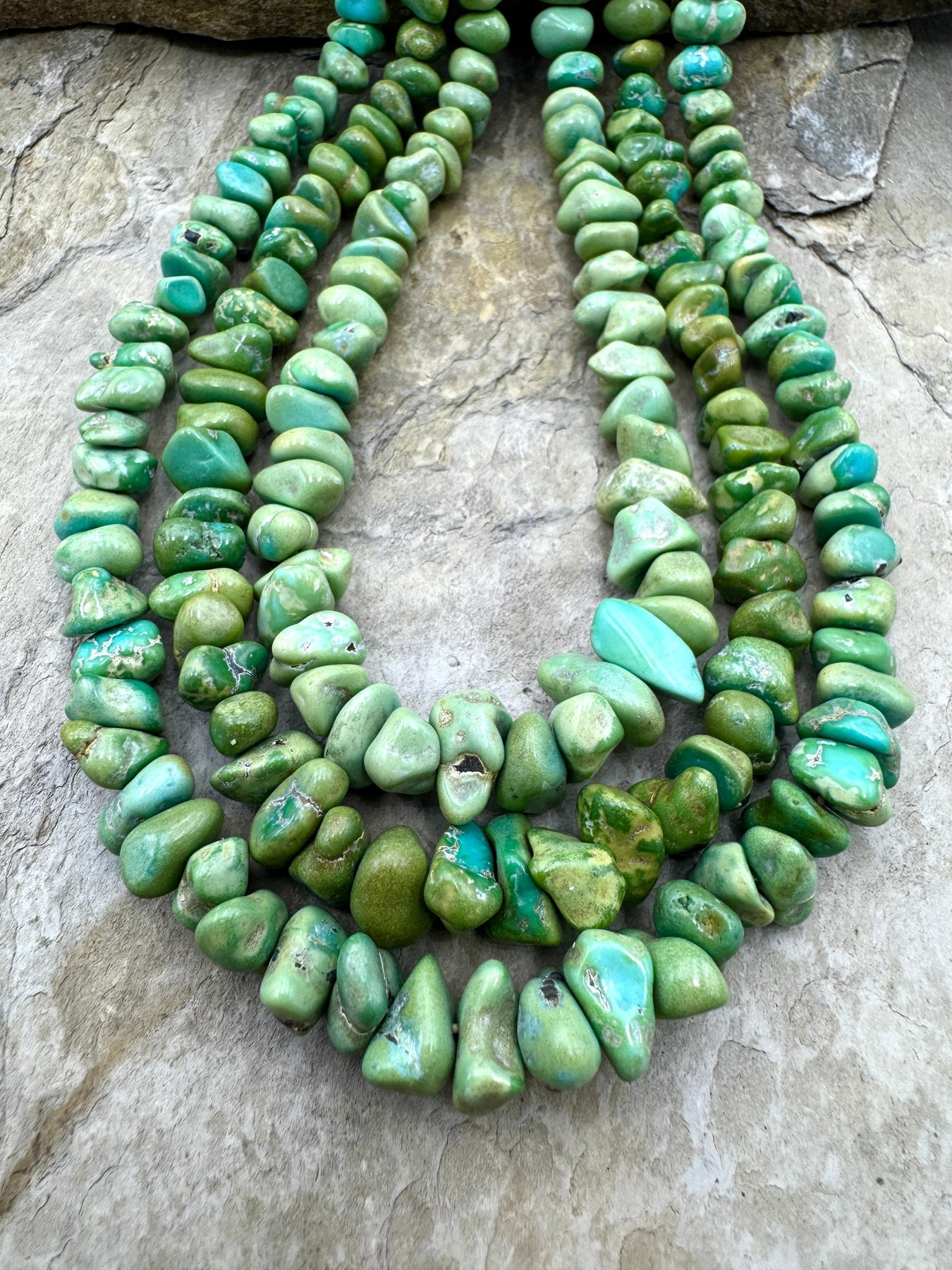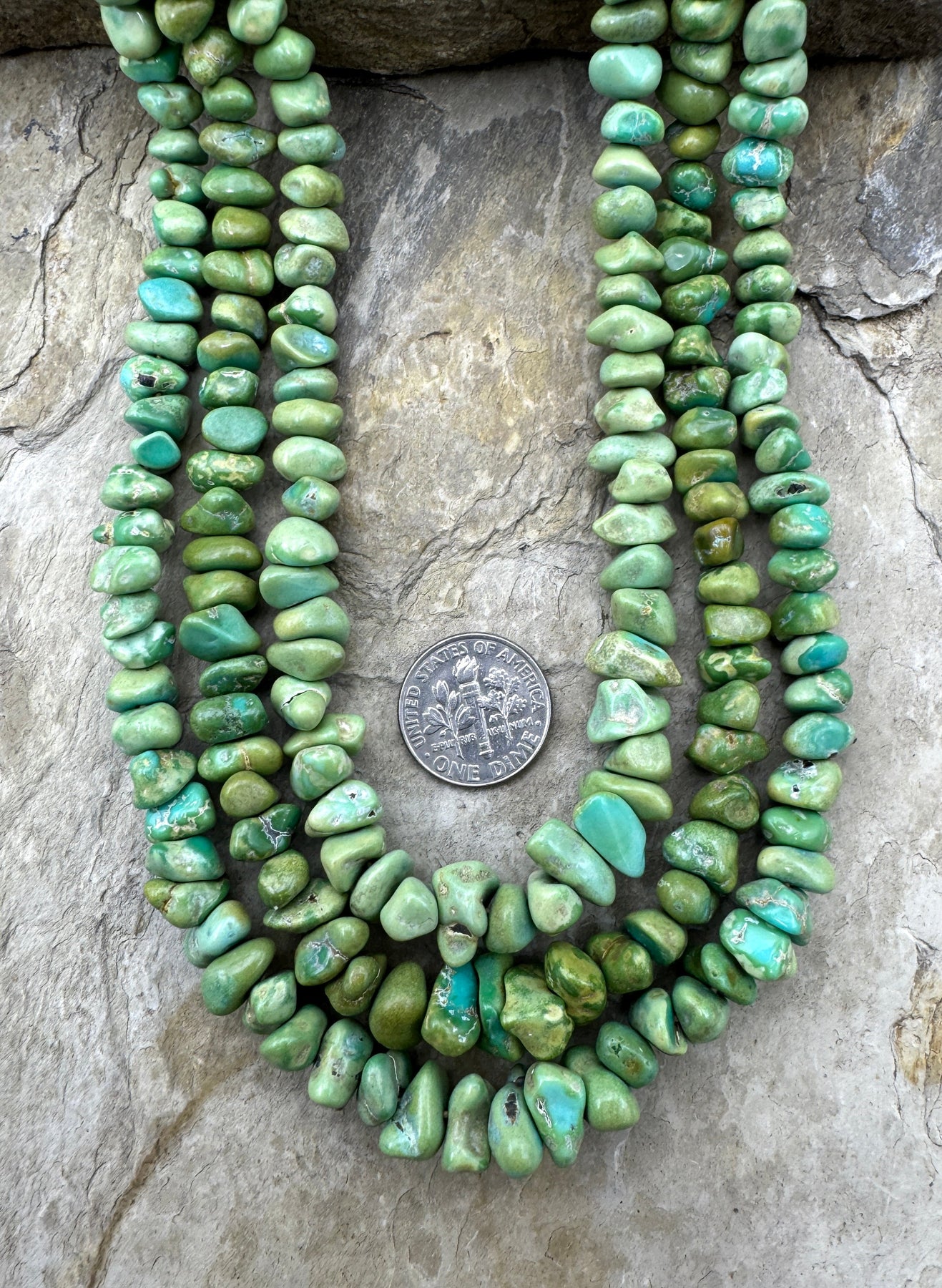 RARE NATURAL GREEN EDGED Lone Mountain Turquoise (Nevada) Graduated 6-10mm Nugget Beads, 18 Inch Strand