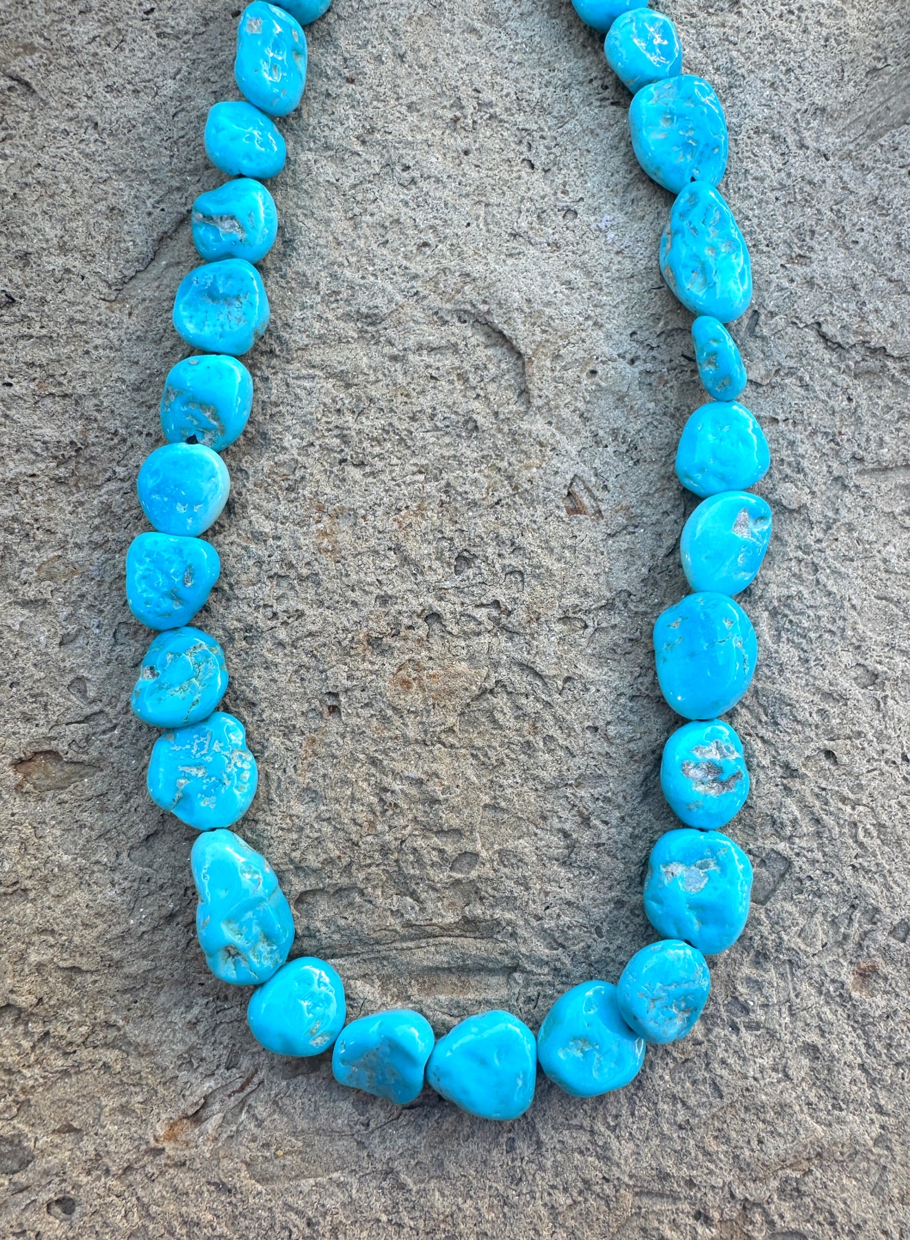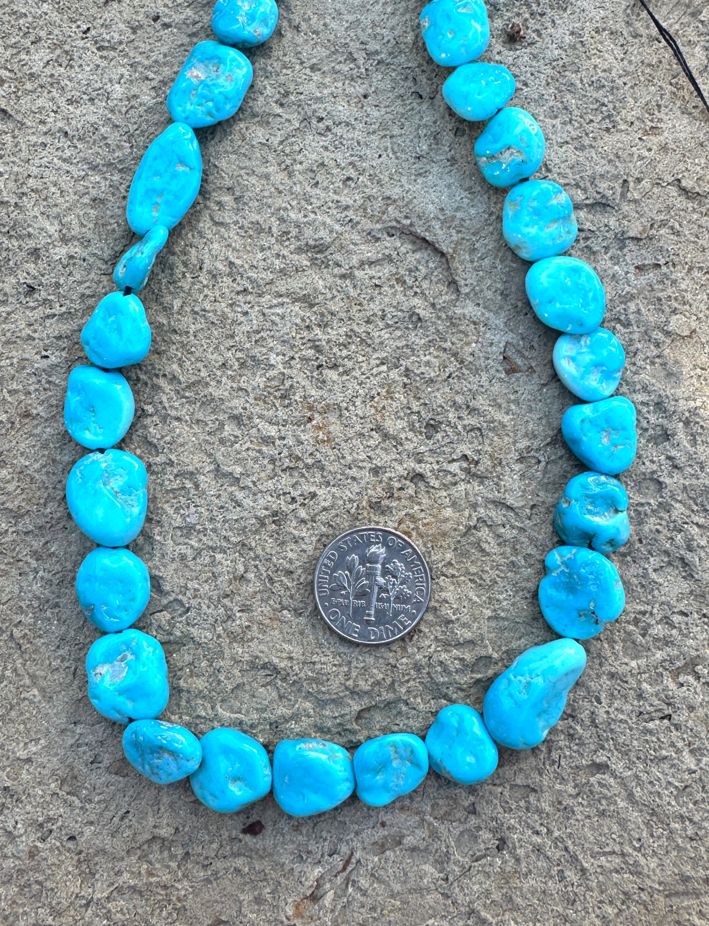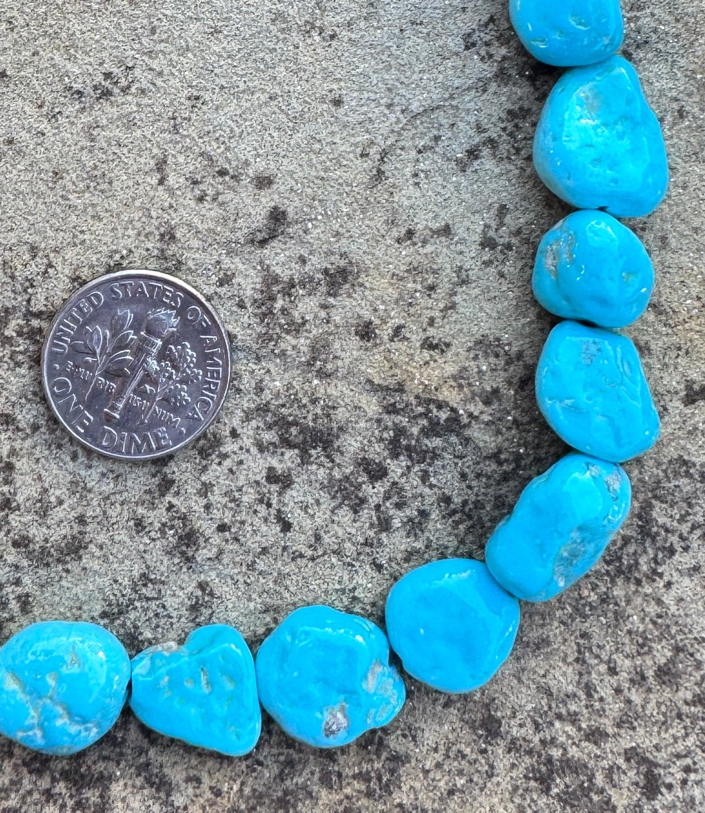 Natural Sleeping Beauty Turquoise (AZ) BIG 10x14mm Flat Nugget Beads, 116 Inch Strand/32 Beads