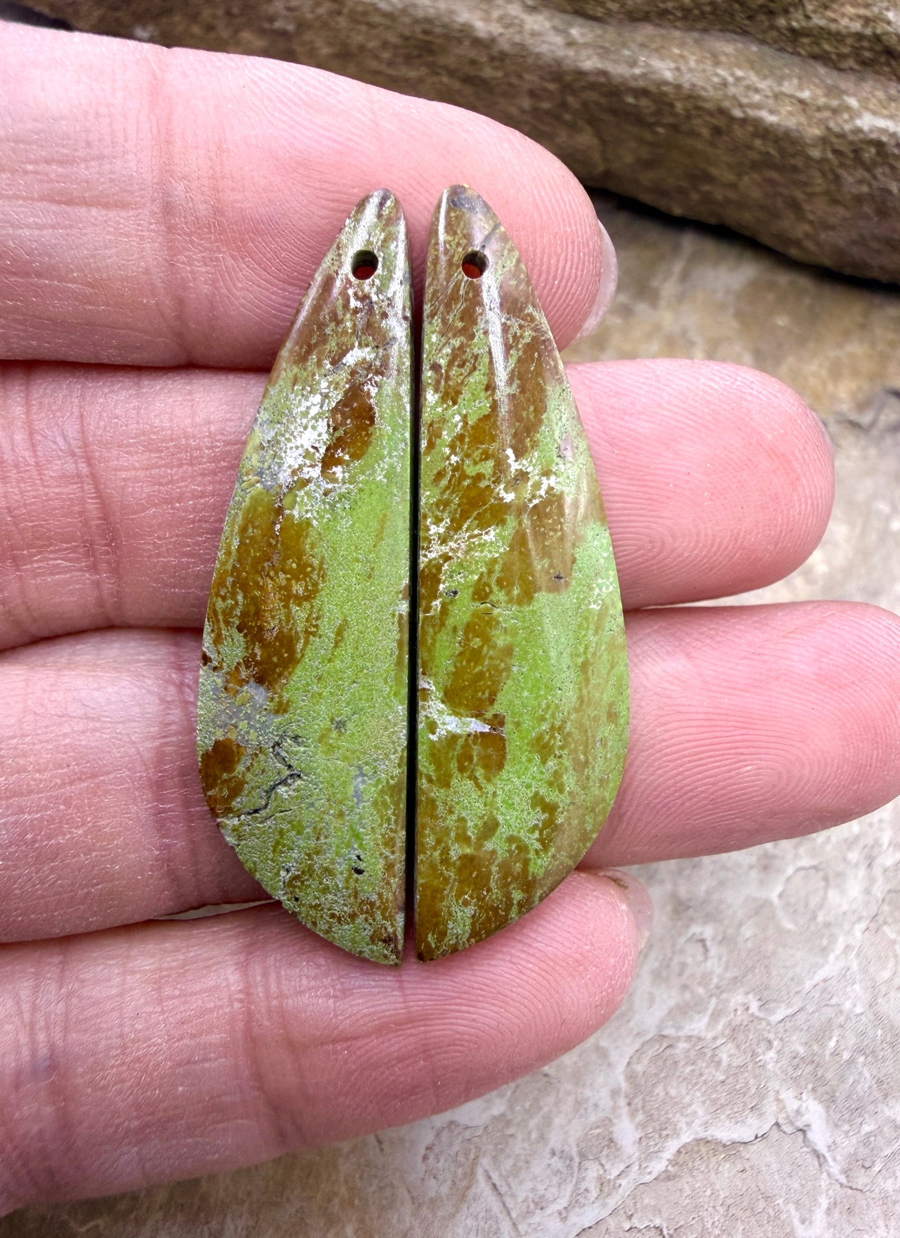 RARE Gaspeite (Canada) Matching Earring Slab Bead Pair 11x42mm