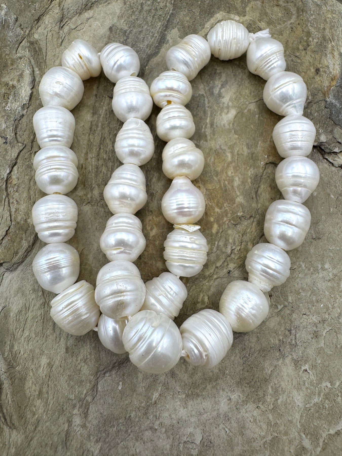 LOT of 7 BUttery White X-LARGE 12-14mm (Large Hole) Ringed Pearls, 15 Inch Strand/31 Pearls