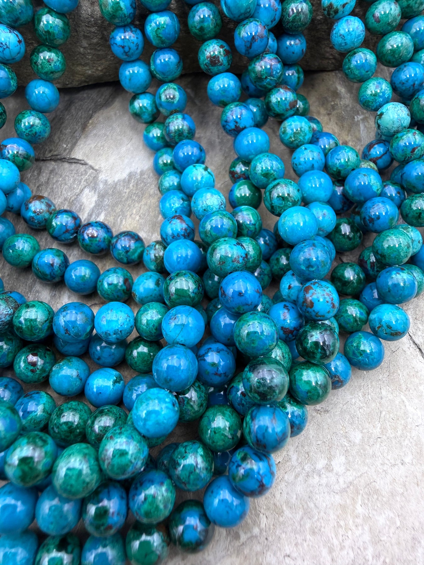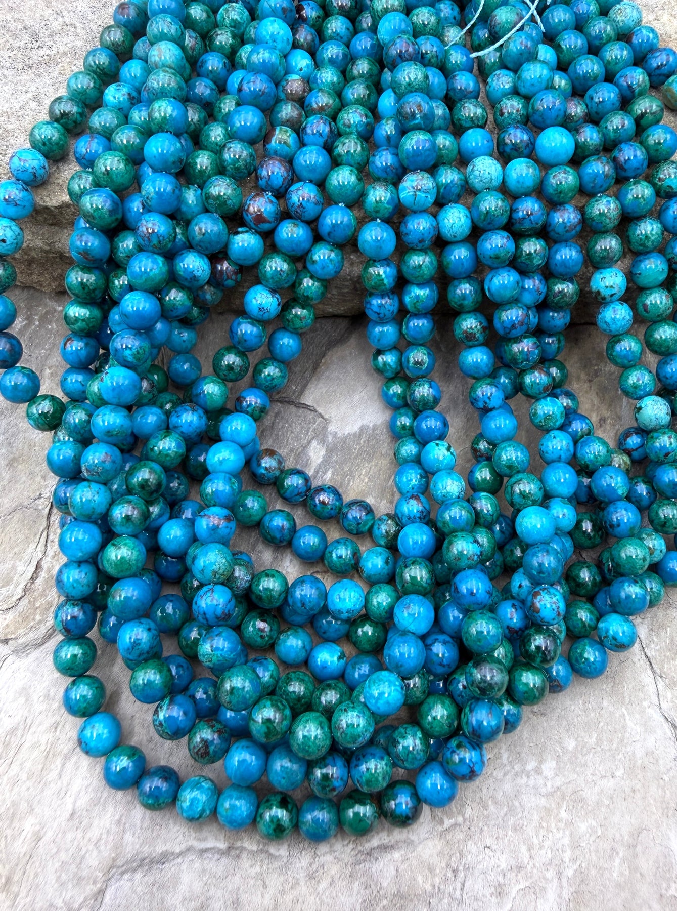 Natural Azurite and Malachite with Chrysocolla 6mm Round Beads, 16 inch Strand/65-67 Beads