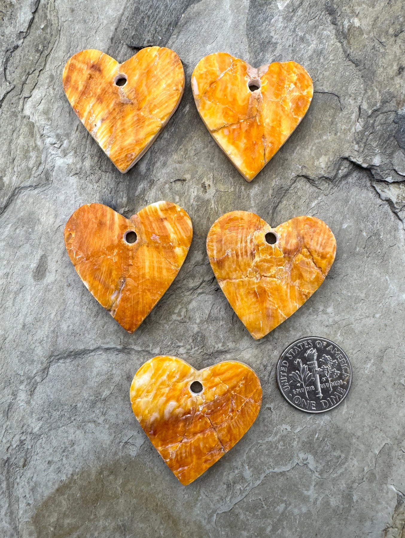 Orange Spiny Oyster Heart Shaped Large Hole Focal Bead 28x31mm, One Focal Bead