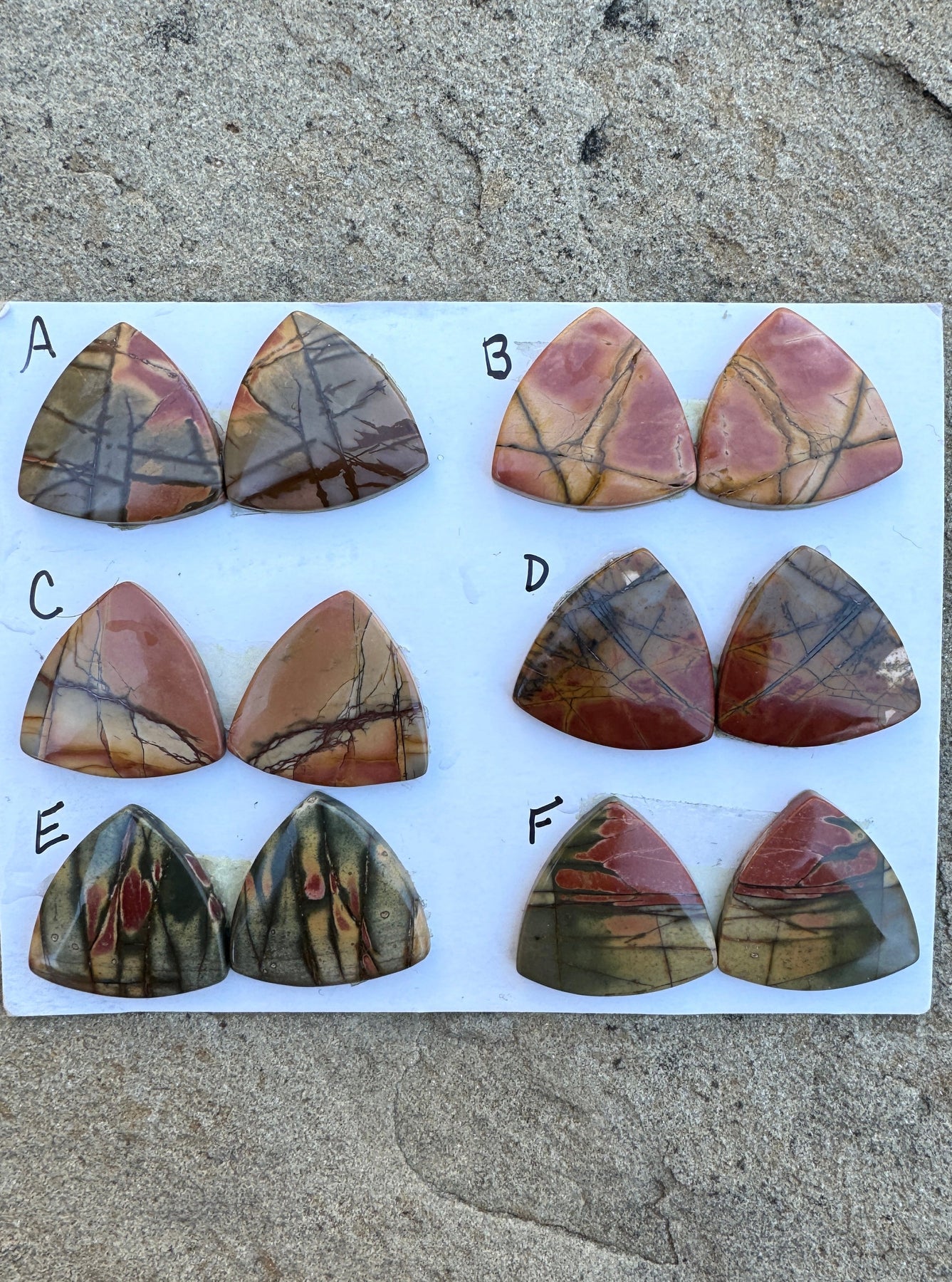 Red Creek Jasper Matching Trillion Shaped Cabochon Pairs 20mm (Select One Pair)