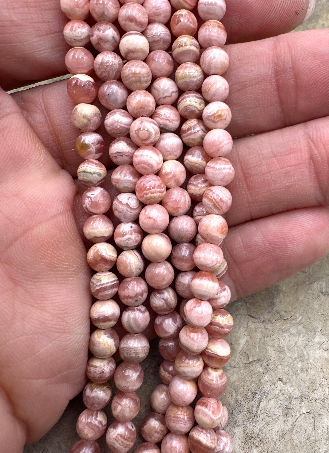 Rhodochrosite 5mm Round Beads 16 inch Strand - Rhodochrosite